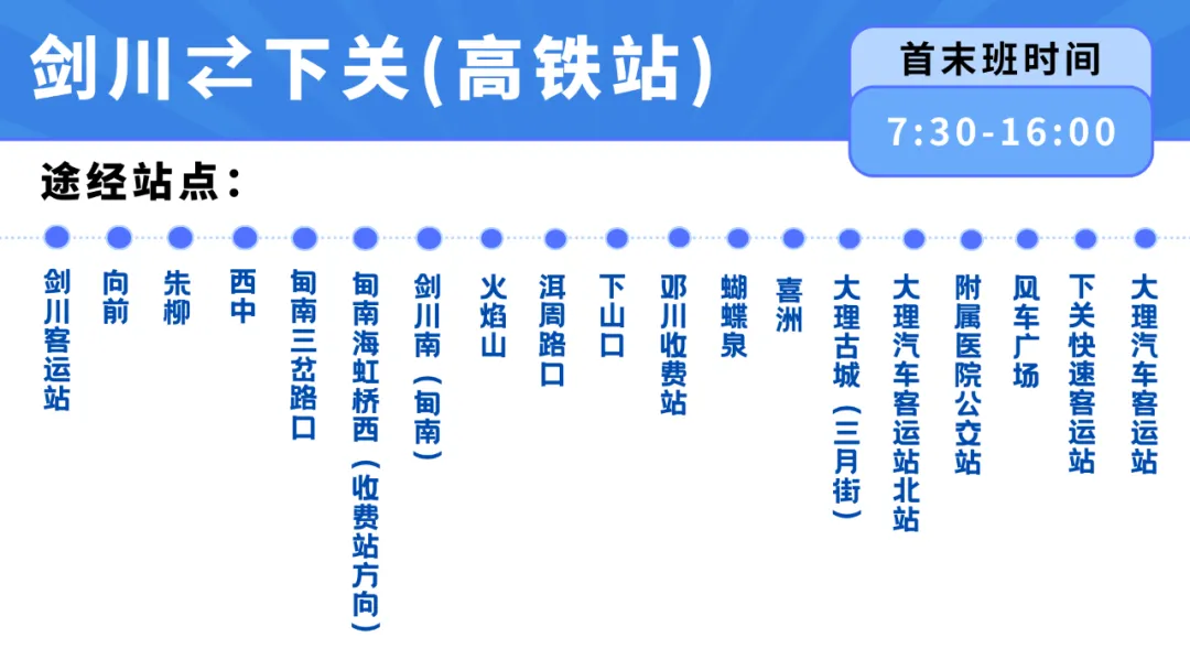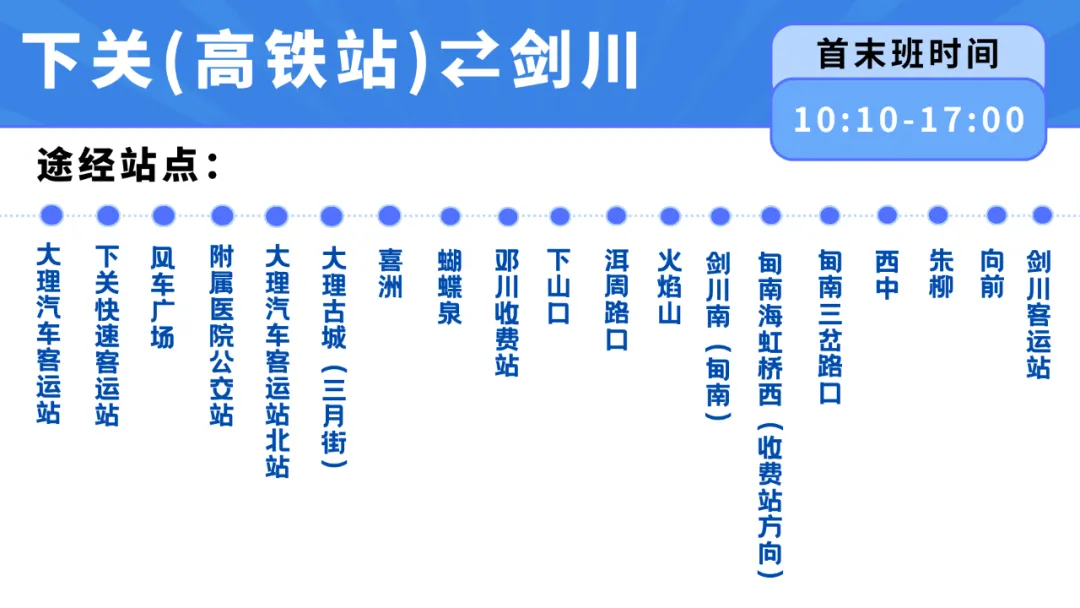 8月25日起,大理交運(yùn)集團(tuán)“劍川?下關(guān)(高鐵站)”小馬可達(dá)站點(diǎn)巴士班次優(yōu)化調(diào)整,每日班次由原先的6趟增至8趟,高頻次發(fā)車更便捷、更省心!