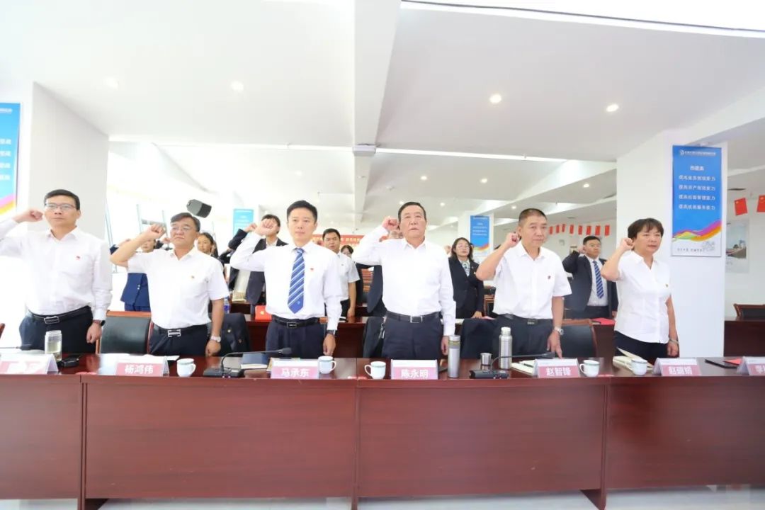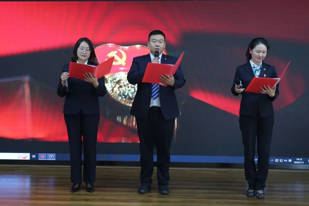 在機(jī)關(guān)黨支部書(shū)記李紅文的領(lǐng)誓下,全體黨員佩戴黨員徽章,舉起右手,面向黨旗莊嚴(yán)宣誓。鏗鏘誓言傳達(dá)出了身為共產(chǎn)黨員自豪感和使命感,也表達(dá)了全體黨員傳承紅色基因和為黨的事業(yè)奮斗終身的堅(jiān)定信念。