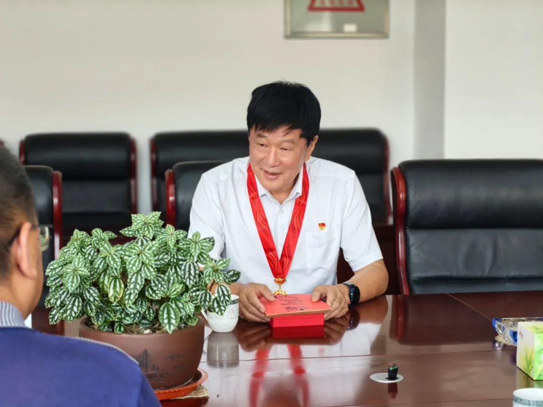 2025年7月1日,中國(guó)共產(chǎn)黨成立104周年之際,經(jīng)開(kāi)區(qū)黨工委副書記杜利輝領(lǐng)導(dǎo)一行赴大理交運(yùn)集團(tuán)進(jìn)行2025年“七一”走訪慰問(wèn)活動(dòng),向集團(tuán)公司黨委書記、董事長(zhǎng)馬建國(guó)致以親切問(wèn)候,并向其頒發(fā)“光榮在黨50年”紀(jì)念章,以此表彰他對(duì)黨和人民事業(yè)的忠誠(chéng)與貢獻(xiàn)。